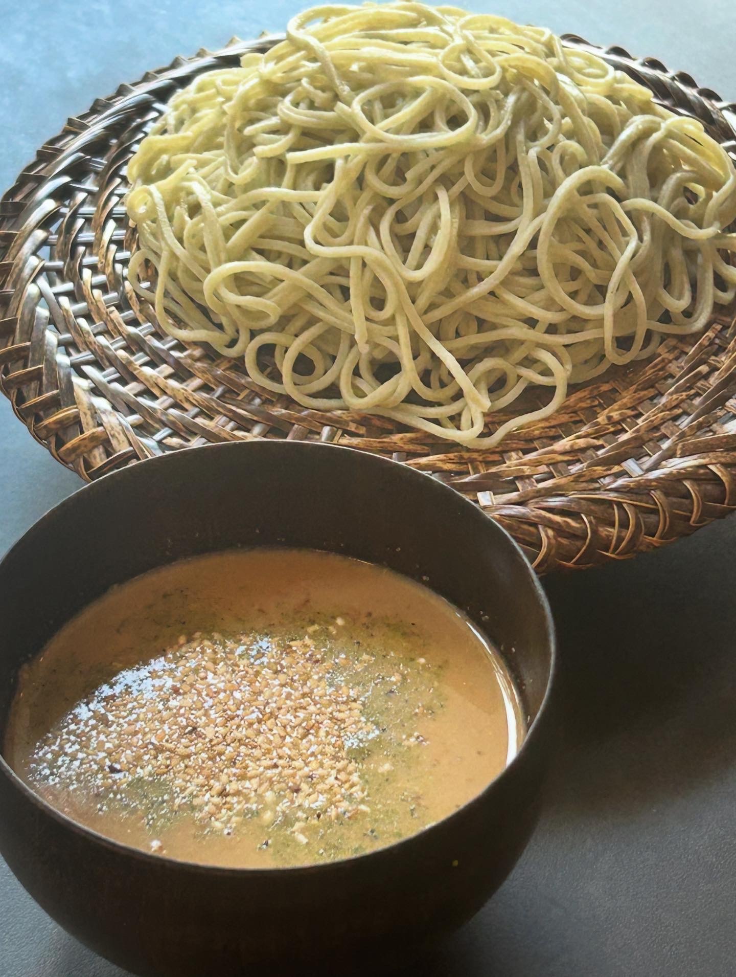 桜えびかき揚げの山椒ごまだれ天せいろ