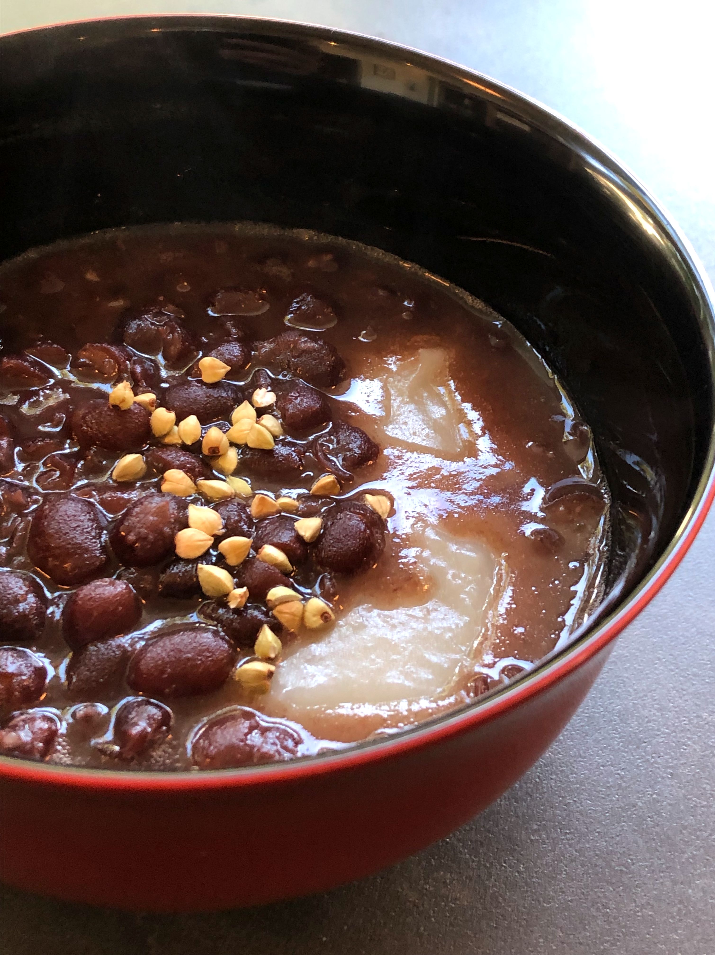 そば白玉とそば茶ゼリーのクリームあんみつ
